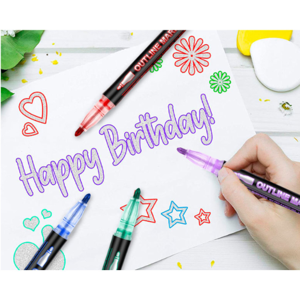 Novo Kit 24 Caneta Outline Marker Metálica Linha Dupla Arte Caneta Contorno