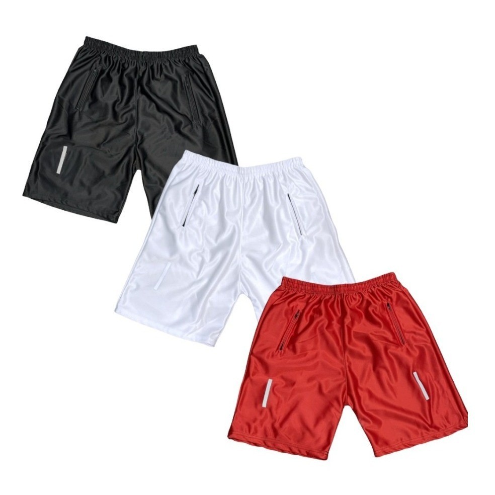 novo Kit com 3 Shorts Bermuda Dry Fit Esportiva Treino 2024 Com Ziper no Bolso