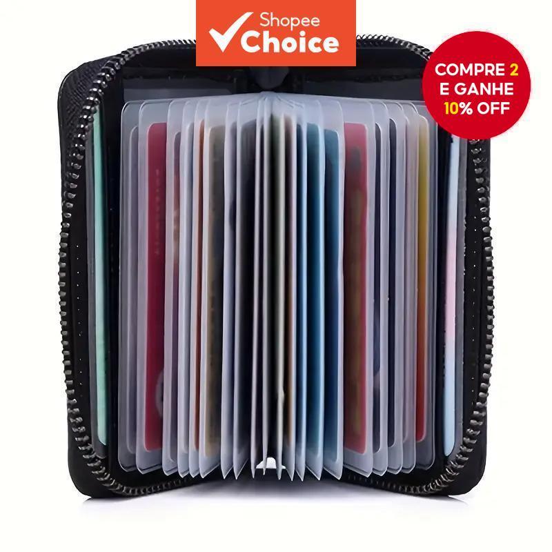 Novo Porta-Cartões de Crédito em Couro PU com Zíper, com 20 Slots para Cartões, Presente Ideal para Homens