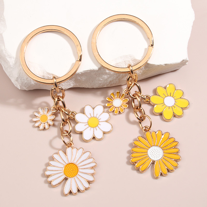 Novo Porta-Chaves de Flores de Primavera em Esmalte, Chaveiro de Margarita, Estilo Doce e Romântico, Pingente para Carro