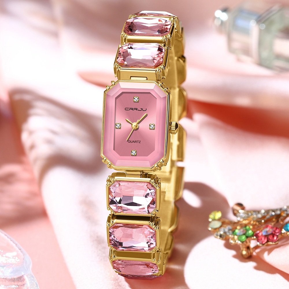 Novo Relógio Feminino CRRJU Marca De Moda Autêntica Com Pulseira De Aço Inoxidável Design Criativo Exclusivo Mostrador Q