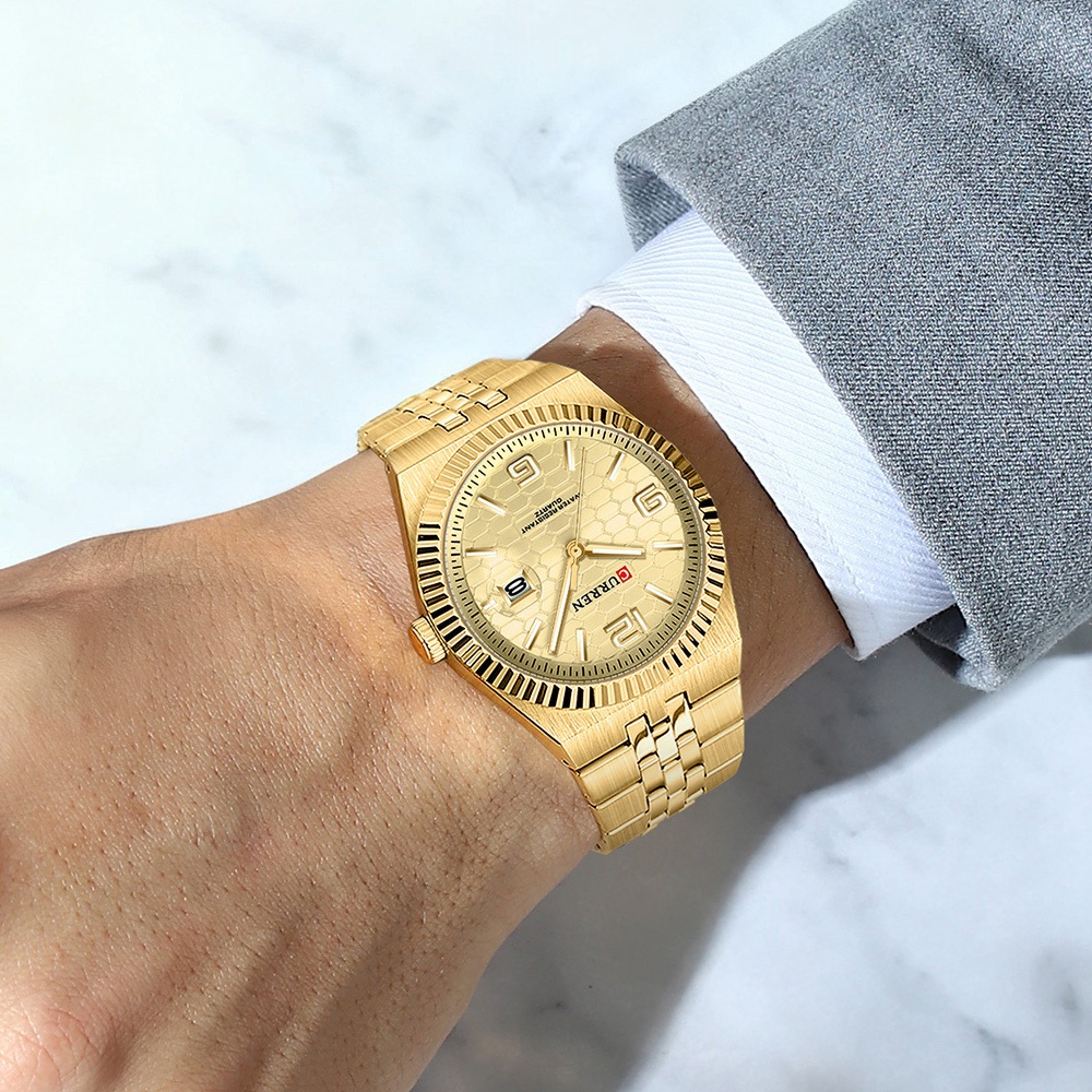 Novo Relógio Masculino CURREN Design Exclusivo Mostrador Vintage De Aço Inoxidável Mãos Luminosas Display Automático De