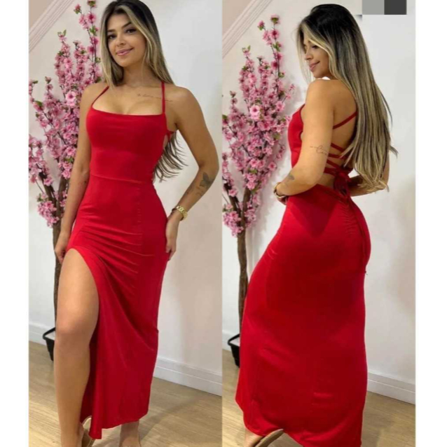 NOVO vestido colado LONGO SUPLEX com fenda costas nuas trançadas elegante empina bumbum