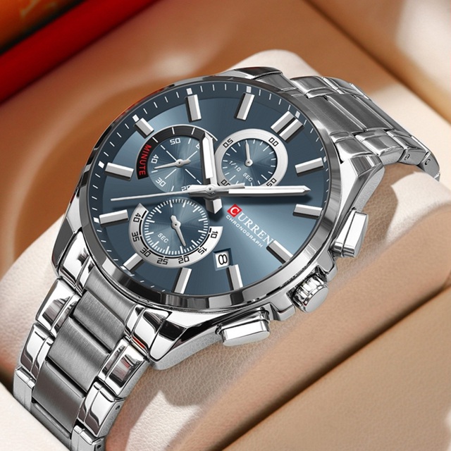 Novos Relógios Masculinos CURREN Marca Original Moda Cronógrafo De Aço Inoxidável Ponteiro Luminoso Com Calendário Negóc
