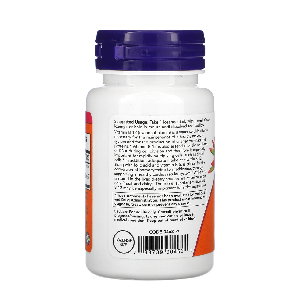 Now Foods Vitamina B12 5000mcg+Ácido Fólico 60Past Importado