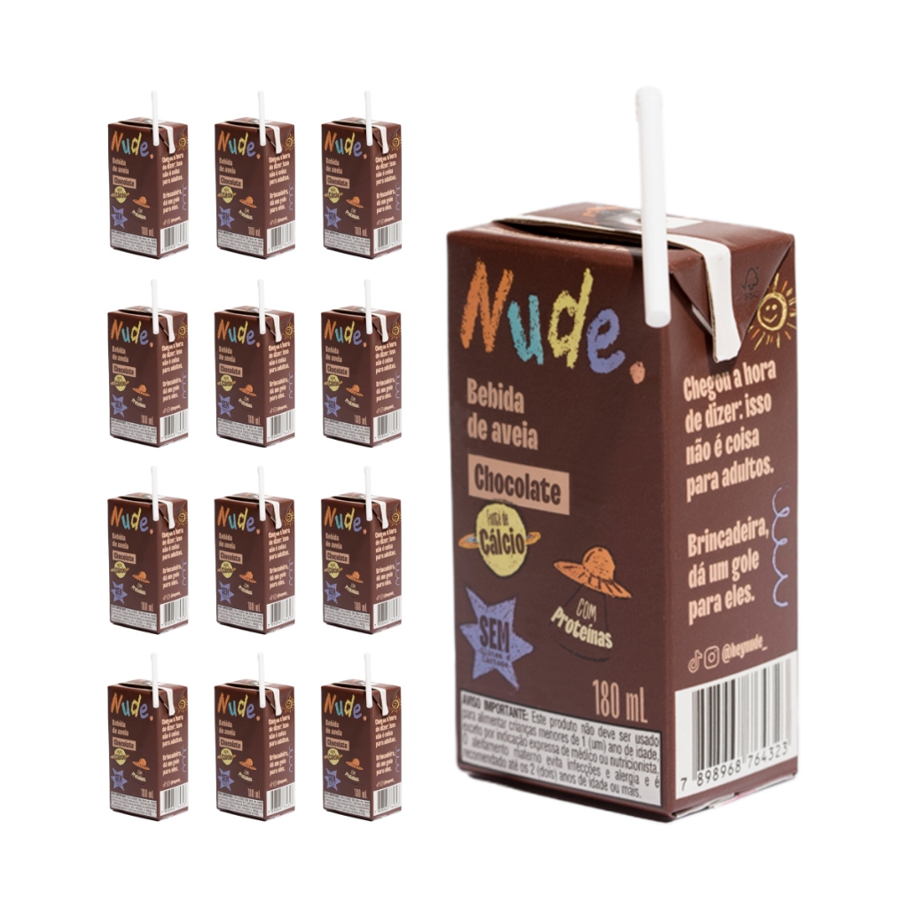 Rabiscamos algo com ~gosto de gostoso~ pra brilhar na hora da boquinha dos pequenos – especialmente daqueles com paladar exigente, quase que de gente grande. A versão repaginada do Nude Kids vem turbinada com mais cálcio, reforçada em proteínas, continua sem nadinha de lactose e glúten. Dá uma espiada na composição: água, aveia, cacau alcalino, fibra de tapioca, cálcio de algas, bicarbonato de sódio, sal marinho e aromas naturais. Tire a prova, não julgamos.