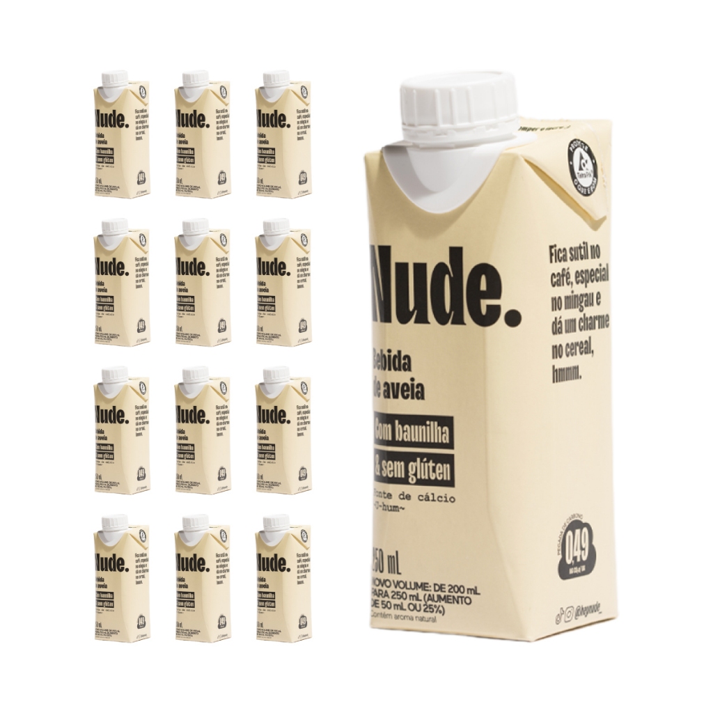 Esse pequeno frasco de Nude Baunilha, agora com 250ml, contém apenas: água, aveia, cálcio de algas (100% vegetal e com alta taxa de absorção), sal marinho e extrato natural de baunilha. Sem glúten, sem nada de origem animal ou outras – cositas más – que você dispensa. E, claro, com baixa pegada de carbono.