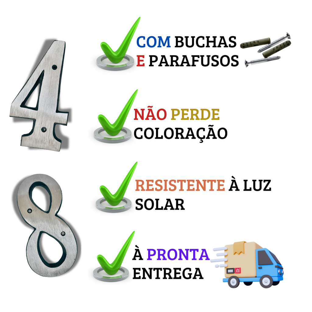 | Número Residencial Grande 20cm Prata E Preto Metal Alumínio Escovado este produto | R$ 21,59 | — | 4.9/5 | 80 |
