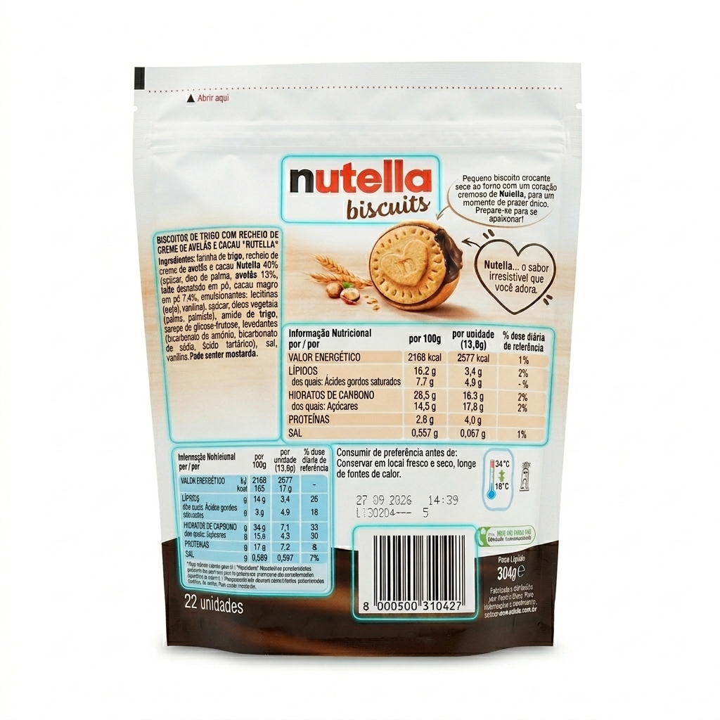 | Nutella Biscuit Cookie recheado de Nutella 304g (Importado) este produto | R$ 79,90 | — | 5.0/5 | 7 |