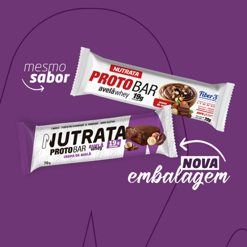 ProtoBar é uma barra de proteína composta por diferentes fontes proteicas. É rica em proteínas de alto valor biológico e prática, proporcionando uma opção nutritiva e saborosa para as refeições intermediárias ao longo do dia. Também é adicionado o Fiber 3, um mix de fibras prebióticas. Diferenciais Adicionado de vitaminas e minerais; Alto teor proteico por 70g de produto; Aporte de fibras prebióticas (Fiber 3); Adicionado de vitamina D3. CONTÉM LACTOSE. ALÉRGICOS: CONTÉM AVELÃ E DERIVADOS DE LEITE E SOJA. PODE CONTER AMENDOIM E PISTACHE. NÃO CONTÉM GLÚTEN. Sugestão e Indicação de Uso: Consumir uma unidade ao dia; Suporte balanceado de nutrientes ideal para refeições intermediárias.