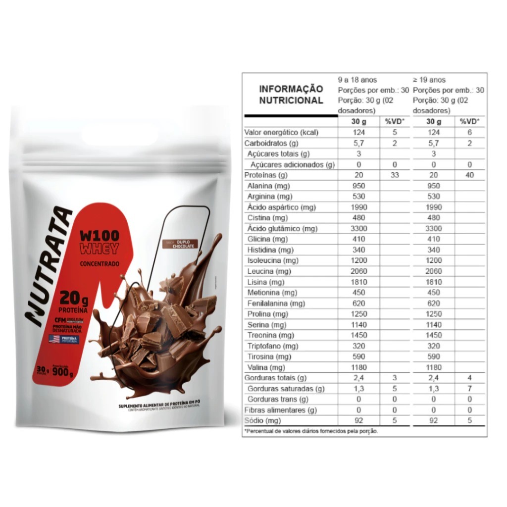 Nutrata W100 Whey Concentrado Todos Sabores 900g Refil