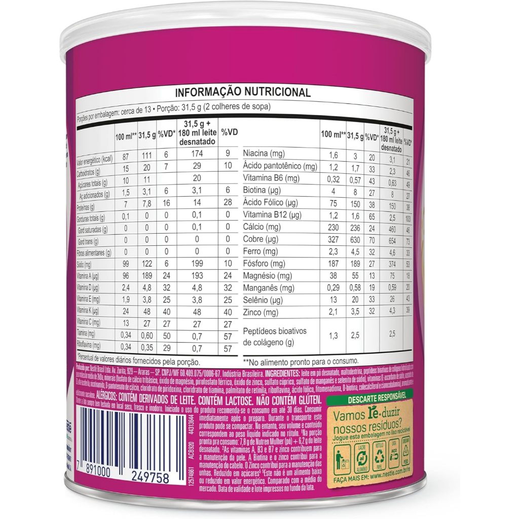 Nutren Beauty Vanilla 400g Suplemento Alimentar Nestlé Principais Características: • Sabor baunilha, proporcionando uma experiência de consumo agradável e suave. • Fórmula enriquecida com colágeno, vitaminas e minerais que auxiliam na saúde da pele, cabelo e unhas. • Textura em pó de fácil dissolução, ideal para preparo rápido e prático. Benefícios: • Auxilia na manutenção da beleza e saúde da pele, cabelo e unhas. • Contribui para a ingestão diária de nutrientes essenciais para adultos. • Fácil preparo, podendo ser consumido em leite, água ou bebidas de sua preferência. Diferenciais do Produto: • Suplemento alimentar desenvolvido especialmente para promover beleza de dentro para fora. • Combinação única de colágeno, vitaminas e minerais para suporte nutricional completo. • Sabor baunilha agradável, tornando o consumo diário mais prazeroso. Especificações Técnicas: • Peso: 400g Instruções de Uso: • Adicionar a quantidade recomendada conforme instruções do rótulo em leite, água ou bebida de sua preferência. • Misturar bem até completa dissolução antes de consumir. • Pode ser consumido diariamente como complemento nutricional. Avisos e Precauções: • Conservar em local seco e fresco. • Manter o produto bem fechado após o uso para preservar a qualidade. • Produto destinado ao consumo de adultos; não substituir refeições completas sem orientação profissional. O que está incluso? • 1 Nutren Beauty Vanilla 400g Suplemento Alimentar Nestlé ---- DÚVIDAS FREQUENTES ---- Os produtos são originais? Sim. Todos os nossos produtos são originais. Emitem nota fiscal? Sim. Emitimos nota fiscal para todos os pedidos.