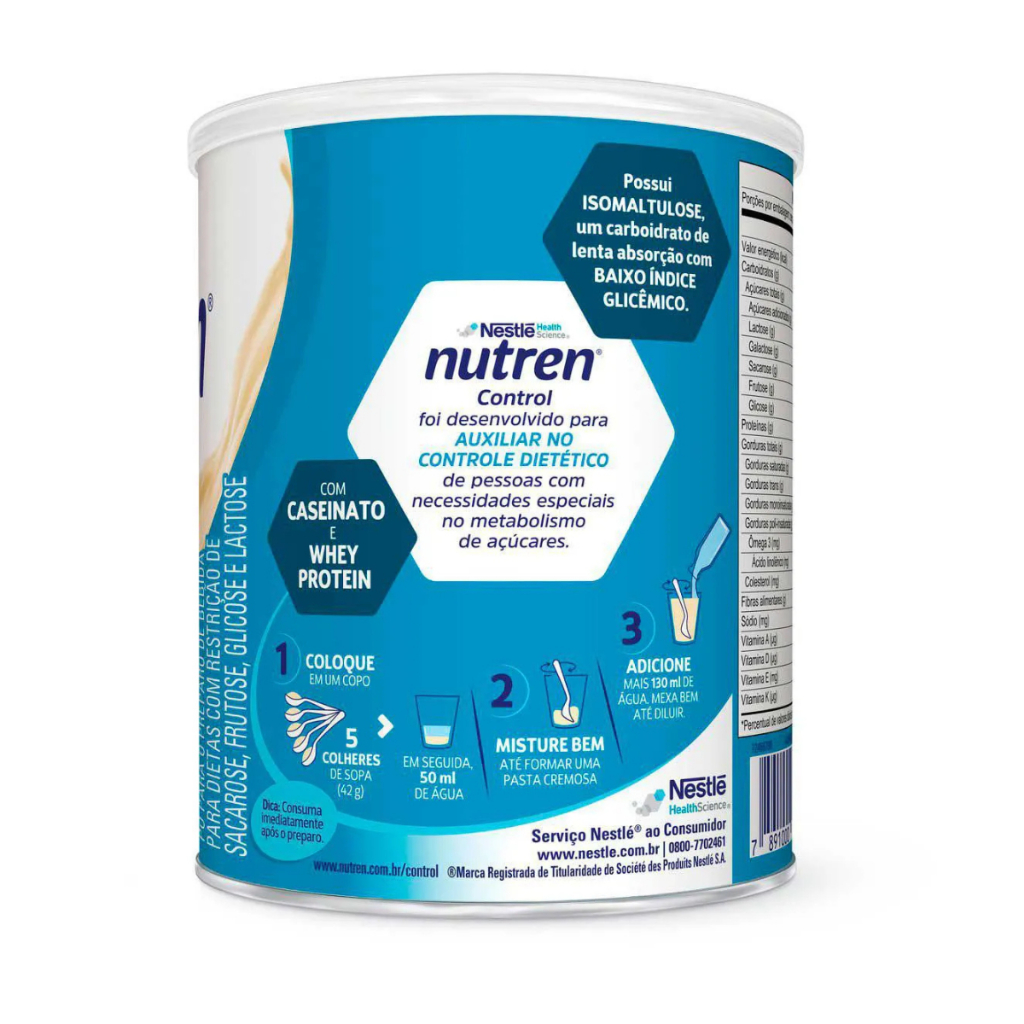 Nutren Control Baunilha 380g Suplemento Alimentar Nestlé Principais Características: - Suplemento alimentar balanceado: Nutren Control Baunilha é um suplemento nutricional desenvolvido para ajudar no controle da ingestão calórica, com uma formulação equilibrada e rica em nutrientes essenciais. - Sabor agradável de baunilha: Oferece um sabor suave e delicioso, tornando o consumo do suplemento mais prazeroso e fácil de incluir na rotina diária. - Fórmula com controle de carboidratos: Ideal para quem busca controlar os níveis de açúcar no sangue, esta fórmula possui um ajuste especial de carboidratos, promovendo uma absorção mais lenta e controle glicêmico. Benefícios: - Auxílio no controle de peso: A composição equilibrada de Nutren Control favorece uma sensação de saciedade por mais tempo, ajudando a controlar o apetite e, consequentemente, o peso corporal. - Melhora do controle glicêmico: A formulação ajuda a controlar os níveis de glicose no sangue, sendo uma excelente opção para quem precisa manter a glicemia sob controle, como diabéticos ou pessoas em processo de emagrecimento. - Fonte de fibras: Nutren Control contém fibras que contribuem para o bom funcionamento intestinal e a melhora da digestão, promovendo mais saúde e bem-estar. Diferenciais do Produto: - Controle glicêmico: Ao contrário de outros suplementos no mercado, Nutren Control Baunilha foi especialmente formulado com um equilíbrio entre os carboidratos e fibras, o que favorece a manutenção dos níveis de glicose no sangue. - Sabor de baunilha: Sua deliciosa fórmula de baunilha é uma das preferências dos consumidores, tornando o consumo diário mais agradável e fácil. - Marca de confiança Nestlé: Nutren Control é produzido por Nestlé, uma marca reconhecida mundialmente pela qualidade e expertise em suplementos alimentares, oferecendo segurança e garantia de um produto eficaz. Especificações Técnicas: - Peso: 380g Instruções de Uso: - Adicione 3 colheres de sopa (aproximadamente 30g) de Nutren Control Baunilha a 200 ml de água ou leite. - Mexa bem até a total dissolução do produto. - Consuma imediatamente após o preparo. - Pode ser ingerido uma ou duas vezes ao dia, conforme necessidade nutricional, ou conforme orientação de um profissional de saúde. Avisos e Precauções: - Importante: Este suplemento não substitui refeições e deve ser consumido como parte de uma dieta equilibrada. - Armazenamento: Conserve o produto em local fresco e seco, longe de umidade e luz direta. - Consulte um profissional de saúde: É recomendado que o uso do suplemento seja feito sob orientação de um médico ou nutricionista, especialmente para pessoas com condições de saúde específicas. O que está incluso? - 01 Nutren Control Baunilha 380g Suplemento Alimentar Nestlé ---- DÚVIDAS FREQUENTES ---- Os produtos são originais? Sim. Todos os nossos produtos são originais. Emitem nota fiscal? Sim. Emitimos nota fiscal para todos os pedidos.