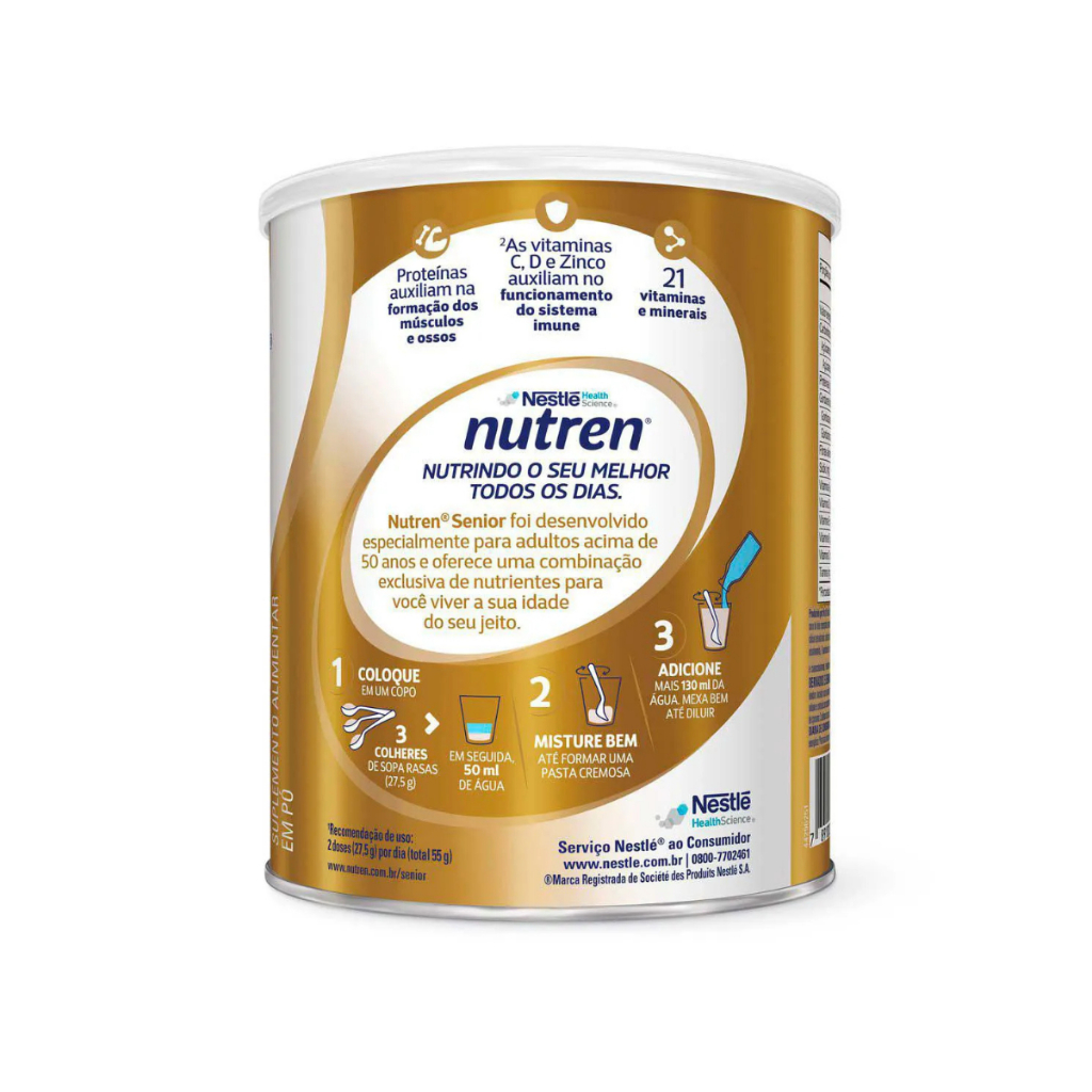 Descrição do Produto: Nutren Senior Sem Sabor 740g O Nutren Senior Sem Sabor 740g é um suplemento alimentar desenvolvido especialmente para atender às necessidades nutricionais de adultos e idosos. Com uma fórmula balanceada e sem sabor, ele pode ser facilmente incorporado à alimentação diária, proporcionando todos os nutrientes essenciais para a manutenção da saúde e bem-estar, sem interferir no sabor de outras preparações. Principais Características: - Fórmula completa e equilibrada: Contém uma combinação de proteínas, vitaminas, minerais e fibras que auxiliam na manutenção da saúde geral, fortalecimento do sistema imunológico e saúde óssea. - Sem sabor: Ideal para ser utilizado em diversas preparações, sem alterar o sabor dos alimentos ou bebidas. Perfeito para quem prefere uma opção sem sabor específico. - Fácil dissolução: A sua fórmula em pó se dissolve facilmente em líquidos ou alimentos, garantindo praticidade no preparo. Benefícios: - Fortalece o sistema imunológico: Com a presença de vitaminas e minerais essenciais, o Nutren Senior contribui para a proteção e fortalecimento do sistema imunológico. - Auxilia na saúde óssea e muscular: A combinação de cálcio, vitamina D e proteínas favorece a manutenção da saúde óssea e muscular, essencial para a faixa etária avançada. - Melhora a digestão: As fibras presentes na fórmula contribuem para o bom funcionamento do sistema digestivo, promovendo uma absorção eficiente dos nutrientes. Diferenciais do Produto: - Produto sem sabor: A versão sem sabor do Nutren Senior é uma excelente opção para quem deseja manter a liberdade de sabor nas suas receitas ou bebidas, tornando o suplemento fácil de integrar à alimentação diária. - Fórmula especializada para idosos: Nutren Senior foi formulado para atender as necessidades nutricionais dos idosos, oferecendo nutrientes essenciais em uma fórmula balanceada e eficaz. - Marca Nestlé: A confiança da marca Nestlé, que é referência em nutrição, garante a qualidade e eficácia do suplemento. Especificações Técnicas: - Peso: 740g Instruções de Uso: - Preparo: Misture 6 colheres de sopa (aproximadamente 30g) de Nutren Senior em 200ml de água ou adicione ao alimento ou bebida de sua preferência. - Modo de consumo: Recomenda-se uma a duas porções diárias, conforme orientação médica ou nutricional. Avisos e Precauções: - Consulte um médico ou nutricionista: Antes de iniciar o uso, é importante garantir que o produto seja adequado às suas necessidades nutricionais específicas. - Armazenamento: Armazenar em local seco e fresco, longe da luz direta. Após aberto, consumir em até 30 dias. - Contraindicações: Este produto não é indicado para pessoas com alergia a algum componente da fórmula. O que está incluso? - 1 unidade de Nutren Senior Sem Sabor 740g ---- DÚVIDAS FREQUENTES ---- Os produtos são originais? Sim. Todos os nossos produtos são originais. Emitem nota fiscal? Sim. Emitimos nota fiscal para todos os pedidos.