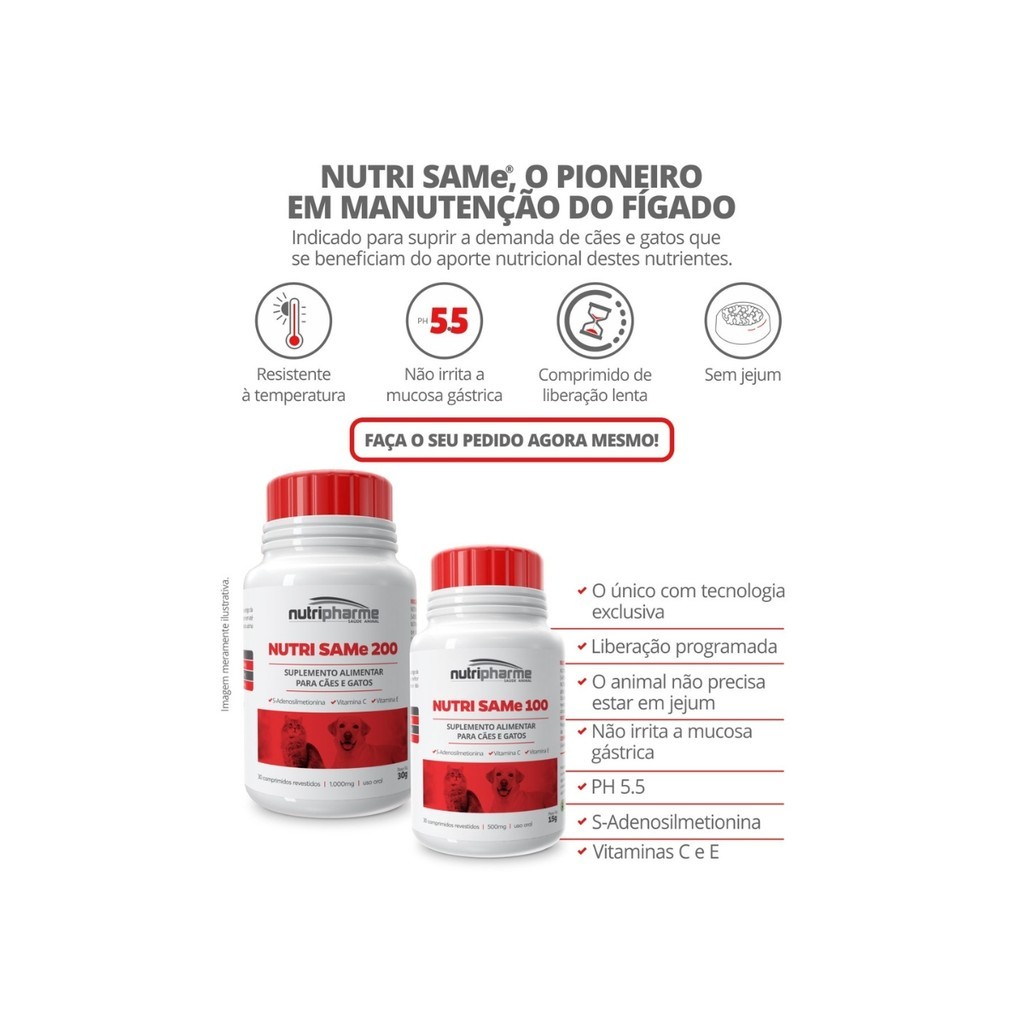 Nutri Same 100 30 Comprimidos 500mg – Nutripharme | Suplemento para Cães e Gatos