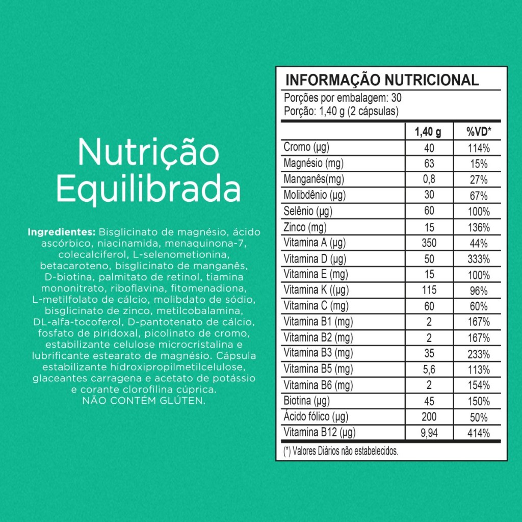 O Nutrify Multi-All em cápsulas é um complexo completo e equilibrado de vitaminas e minerais, formulado para promover saúde, vitalidade e bem-estar. Sua composição fortalece o sistema imunológico e auxilia no metabolismo, contribuindo para a produção de energia e a formação de células vermelhas do sangue. Vegano e sem glúten, é uma opção ideal para quem busca suplementação de qualidade, adequada a diferentes estilos de vida. Produzido pela Nutrify, garante segurança, eficácia e compromisso com a saúde e o bem-estar.