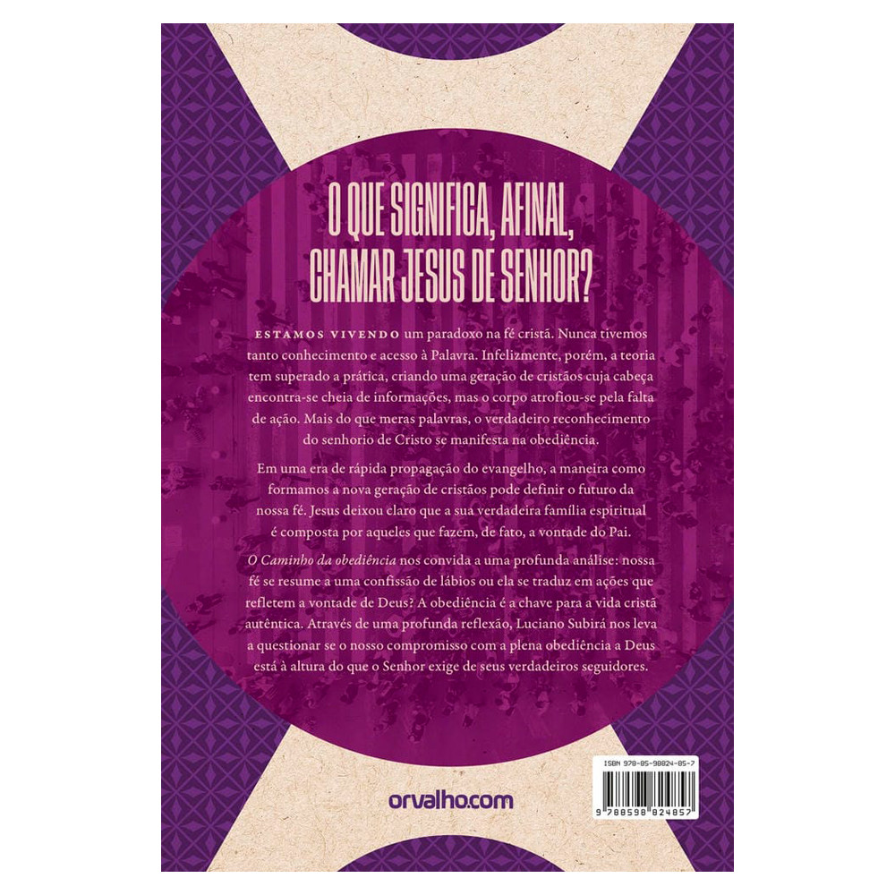Livro O Caminho da Obediência | Luciano Subirá Como Viver a Verdade que Cremos e PregamosLuciano SubiráEm "O Caminho da Obediência", Luciano Subirá apresenta uma reflexão crucial para quem busca uma fé genuína: nossa crença se limita a palavras ou se manifesta em ações que confirmam a vontade de Deus? Este livro revela que a obediência é o fundamento essencial para uma vida cristã autêntica e transformadora. Com profundidade bíblica, o autor convida você a examinar se o seu compromisso com Deus está alinhado com os princípios exigidos por Ele para seus verdadeiros seguidores. Uma obra indispensável para quem deseja aprofundar sua espiritualidade e viver uma fé prática e obediente. Páginas: 280 Dimensões: 23 x 16 x 1,3 cm