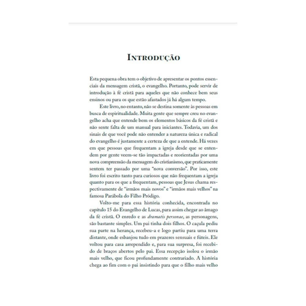 DESCRIÇÃO Em O Deus Pródigo, o renomado pastor e autor Timothy Keller apresenta uma poderosa reflexão sobre a parábola do filho pródigo, revelando que a história contada por Jesus é muito mais profunda do que comumente se imagina. Com sua habilidade única de unir clareza teológica e sensibilidade pastoral, Keller mostra que tanto o filho rebelde quanto o filho obediente estão espiritualmente distantes do Pai — e que somente o amor extravagante de Deus pode restaurar verdadeiramente o coração humano. Este livro é um convite para redescobrir a essência da fé cristã, compreender a graça transformadora e abandonar uma religião baseada em méritos, abrindo espaço para uma relação genuína com Deus. Ideal para devocionais, grupos de estudo bíblico e leitura pessoal, “O Deus Pródigo” tem tocado milhões de vidas ao redor do mundo. FICHA TÉCNICA Título: O Deus Pródigo – Recuperando a Essência da Fé Cristã Autor: Timothy Keller Editora: Vida Nova Idioma: Português Acabamento: Brochura Formato: 14 x 21 cm Páginas: 176 ISBN: 9788527508780 PALAVRAS-CHAVE timothy keller, o deus pródigo, graça de deus, fé cristã, parábola do filho pródigo, vida nova, cristianismo, espiritualidade, relacionamento com deus, perdão