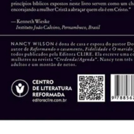A mulher de hoje é ingênua. ela se tornou cativa das mentiras promulgadas pelo mundo moderno e sucumbiu à mentalidade humanista. A mulher moderna foi, do mesmo modo que Eva, enganada e conduzida por suas própria paixões para longe do domínio e das responsabilidades que recebeu de Deus. Informação adicional Título O Fruto de Suas Mãos | Nancy Wilson Peso 0.144 kg Dimensões 21 x 14 x 1 cm Autor Nancy Wilson Editora Clire ISBN 9788562828454 Páginas 114