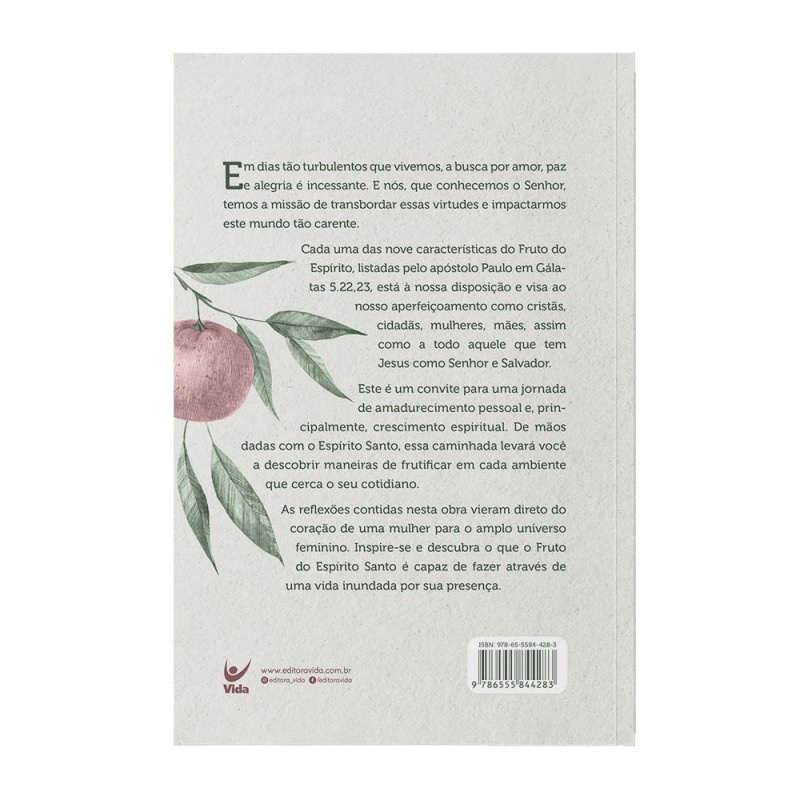 Em dias tão turbulentos que vivemos, a busca por amor, paz e alegria é incessante. E nós, que conhecemos o Senhor, temos a missão de transbordar essas virtudes e impactarmos este mundo tão carente. Cada uma das nove características do Fruto do Espírito, listadas pelo apóstolo Paulo em Gálatas 5.22,23, está à nossa disposição e visa ao nosso aperfeiçoamento como cristãs, cidadãs, mulheres, mães, assim como a todo aquele que tem Jesus como Senhor e Salvador. Este é um convite para uma jornada de amadurecimento pessoal e, principalmente, crescimento espiritual. De mãos dadas com o Espírito Santo, essa caminhada levará você a descobrir maneiras de frutificar em cada ambiente que cerca o seu cotidiano. As reflexões contidas nesta obra vieram direto do coração de uma mulher para o amplo universo feminino. Inspire-se e descubra o que o Fruto do Espírito Santo é capaz de fazer através de uma vida inundada por sua presença. Detalhes do Produto: Autor: Mariel Batista Editora: Vida Acabamento: Brochura Dimensões: 15,3 larg. X 20,8 alt. Número de páginas: 176