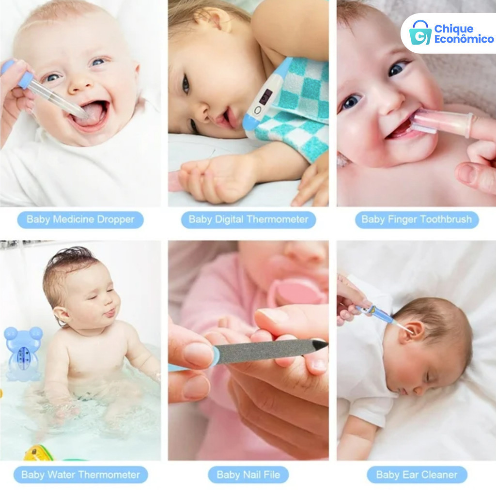 O Kit de saúde e cuidados do seu bebê inclui 13 peças, inclui máquina de corte de termômetro e/ou