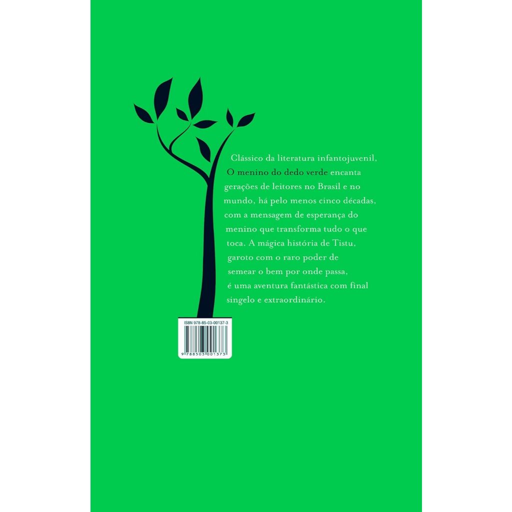 Tistou não é uma criança como as outras.  Ele os empurra seus polegares verdes para dentro da terra e coisas mágicas acontecem! Encantador e sensível como O pequeno principe,  O menino do dedo verde  é um clássico da literatura francesa para crianças grandes e pequenas.    Era uma vez Tistu...Um menino diferente de todo mundo. Com uma vidinha inteiramente sua, o pequeno de olhos azuis e cabelos loiros, deixava impressões digitais que suscitavam o reverdecimento e a alegria. As proezas de seu dedo verde eram originais e um segredo entre ele e o velho jardineiro, Bigode, para quem seu polegar era invisível e seu talento, oculto, um dom do céu. O menino do dedo verde encanta gerações de leitores no Brasil e no mundo, há pelo menos cinco décadas, com a mensagem de esperança do menino que transforma tudo o que toca. A mágica história de Tistu, garoto com raro poder de semear o bem por onde passa, é uma aventura fantástica com final singelo e extraordinário.