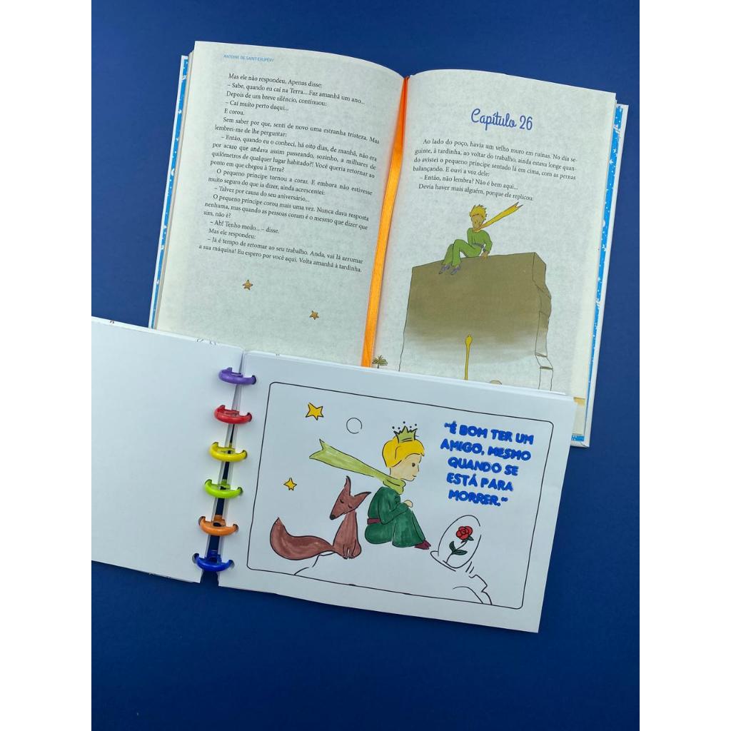 O Pequeno Príncipe - Kit 1 Livro Capa Almofadada + 1 Livro de Colorir Encadernação em Disco