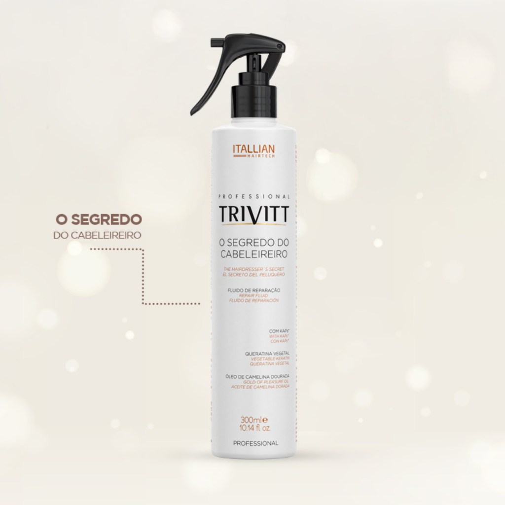 O SEGREDO DO CABELEIREIRO TRIVITT 300mL DESCRIÇÃO: Lançamento exclusivo: “O segredo do Cabeleireiro” reconstrói instantaneamente a estrutura do cabelo frágil e danificado. Finalidade: Reconstruir instantaneamente a estrutura do cabelo frágil e danificado. Sua fórmula rica em KAPs (Proteínas Associadas à Queratina) devolve ao cabelo massa, resistência e alinhamento. ATIVOS: KAPs (Keratin Associated Proteins): Combinação balanceada de aminoácidos miméticos às KAPs (Proteínas Associadas à Queratina que estão naturalmente presentes na fibra capilar e são sensíveis a ataques e danos físicos e químicos) ligados a uma rede de polímeros que ajuda a fixá-los no interior do córtex. Repõem as proteínas do córtex Aumentam a massa capilar, deixando os cabelos mais “encorpados” Reforçam a estrutura dos fios, elevando sua resistência Por serem KAPs de baixo enxofre, não tornam a fibra capilar endurecida. Promovem balanço e movimento Reparam cabelos quebradiços e danificados Queratina: Os cabelos são constituídos principalmente por essa proteína, composta por uma sequência de 18 aminoácidos interligados por pontes de hidrogênio, dissulfeto (enxofre) e salinas. Como é hidrolisada, apresenta baixo peso molecular, o que facilita sua penetração através das cutículas. Deposita-se sobre as regiões que apresentam danos, restaurando os fios Reequilibra o teor de água e a distribuição de cargas elétricas da fibra capilar Após penetrar através das cutículas, mantém as mesmas seladas (pH adequado para o fechamento das escamas) Óleo de Camelina Dourada: Ingrediente de origem 100% vegetal, obtido da planta “Gold of Pleasure” (Camelina sativa). Fornece a proporção ideal de Ômegas 3 e 6 para restaurar o teor lipídico (oleosidade natural) da fibra capilar Combate o toque áspero dos cabelos ressecados e fragilizados Recupera a elasticidade e flexibilidade dos fios MODO DE USO: Com os cabelos limpos e úmidos, aplique o Reconstrutor Instantâneo Trivitt e massageie do comprimento às pontas. Deixe agir por 3 minutos. Sem enxaguar, aplique a Hidratação Intensiva Trivitt, envolva totalmente os fios e deixe agir por mais 5 minutos. Enxágue e finalize como desejar.