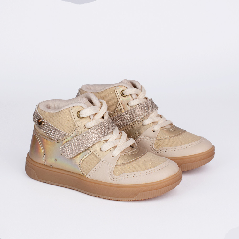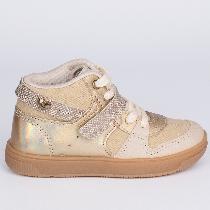 O Tênis Kidy Astral Dourado Ouro Marfim Menina Confortável Escolar Moderno Antiderrapante Leve