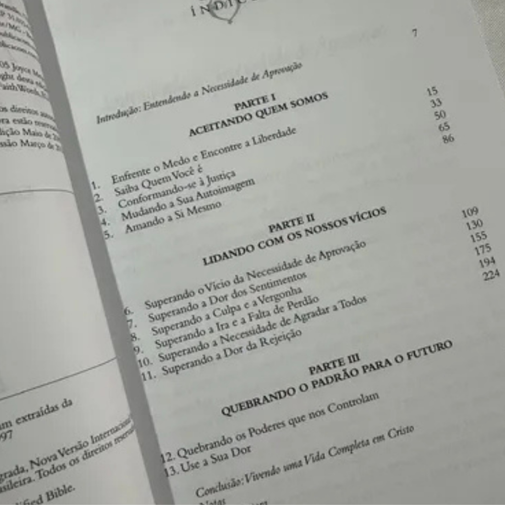 Muitas pessoas em nossos dias têm uma necessidade incontrolável de afirmação, e são incapazes de se sentirem bem consigo mesmas sem ela. Esses “viciados em aprovação” passam todo o tempo em uma luta constante contra a baixa estima e a desordem emocional, o que causa enormes problemas no seu relacionamento com as outras pessoas. Em seu mais recente livro, Joyce Meyer oferece um caminho para a libertação da necessidade avassaladora pela aceitação do mundo exterior – uma aceitação que não traz realização, ao contrário, conduz à decepção. Através de uma análise das situações que geram um “viciado em aprovação” e das formas para se encontrar a libertação dos traços específicos de caráter que fomentam este vício, Joyce apresenta uma visão encorajadora e uma compreensão pessoal dos efeitos da insegurança na vida de uma pessoa. Sua mensagem eterna é a de que Deus supre toda a afirmação que alguém possa precisar, e através dele essas pessoas podem alcançar a liberdade. Comece agora mesmo uma jornada em direção à autocompreensão e aprenda a: Aceitar quem você é. Todos nós lutamos com o nosso senso de valor. O objetivo de Joyce é nos ajudar a entender que todos somos completos em Deus, independente das nossas imperfeições. Lidar com o seu vício por aprovação. Entender os traços de caráter específicos que fomentam o vício – e como o nosso passado geralmente é um fator atuante em nosso comportamento – é um enorme passo para vencermos as nossas inseguranças. Quebrar o domínio do vício. Somente dando passos conscientes em direção à aceitação a nós mesmos e ao exame das nossas motivações, e dependendo de Deus, que nos ama de qualquer maneira, podemos finalmente começar a quebrar as cadeias da insegurança e caminhar em direção a uma vida livre da dor emocional. Deus nos diz por vezes seguidas na Bíblia que somos amados e que temos valor. Portanto, dê o primeiro passo agora para vencer o vício em aprovação dando uma olhada franca em quem você é e em como você se sente a respeito de si mesmo. Páginas 312 páginas Medidas 16x23cm