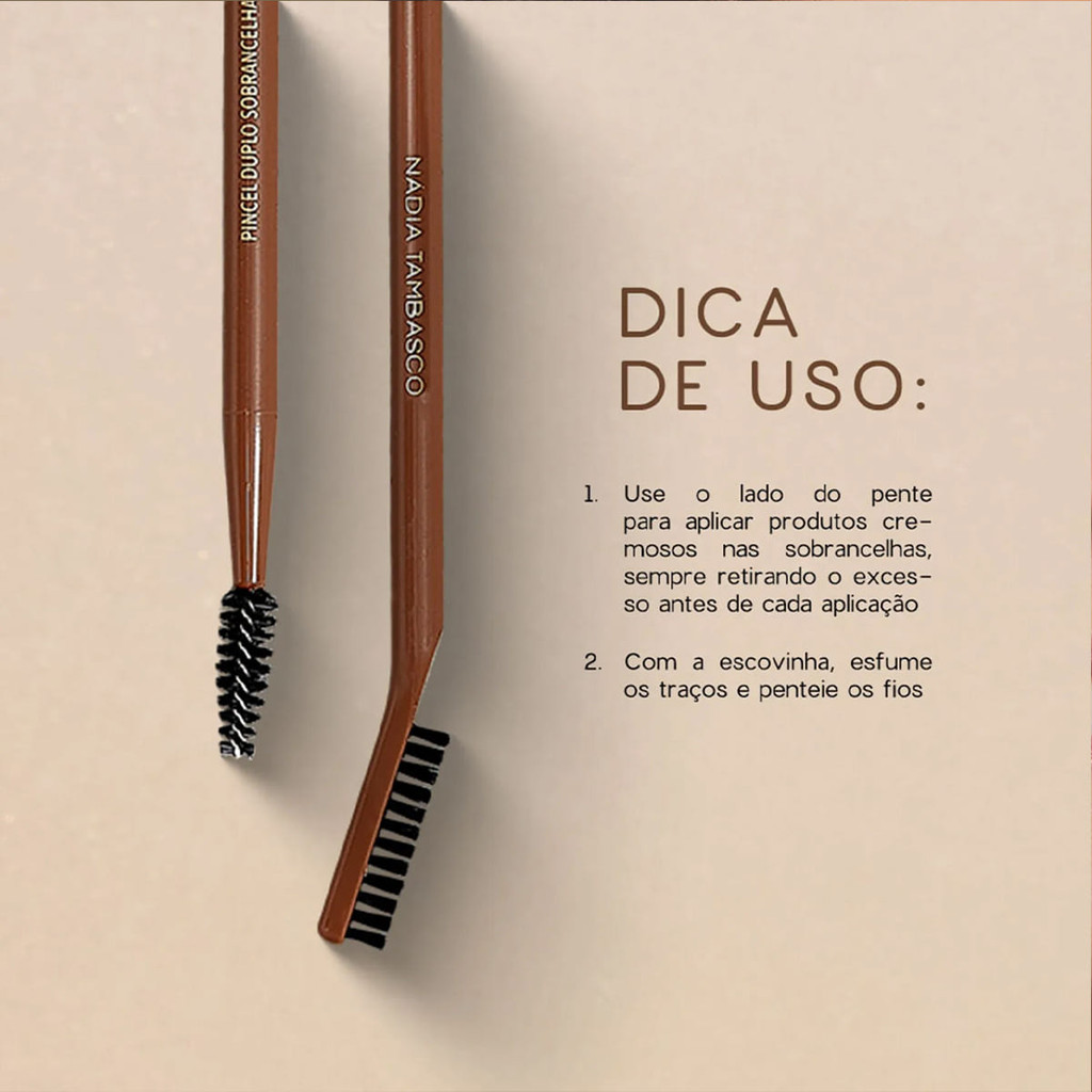 Océane Duo Brow - Pincel para Sobrancelhas Com dois lados, o pincel Océane Duo Brow é ideal para elevar as produções em sua rotina de beleza. Muito prático, permite desenhar e pentear os fios da sobrancelha. Com as cerdas em formato de pente, pode ser utilizado para aplicação de produtos cremosos e em gel. A parte com a escovinha é perfeita para definir o formato das sobrancelhas e auxiliar no preenchimento de falhas. Conselho de Aplicação Pincele o gel na sobrancelha para cima e vá aplicando para fora para modelar conforme desejar.