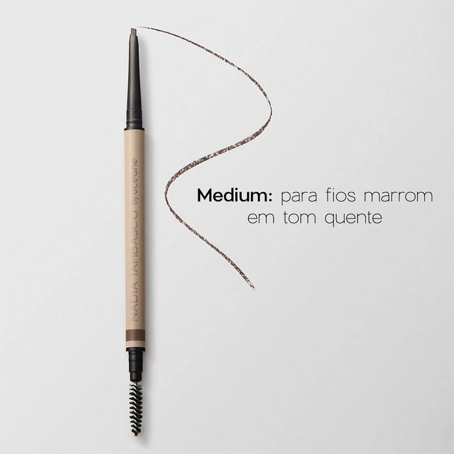 Océane Nádia Tambasco Slim Brow Pencil Medium - Lápis de Sobrancelha 0,07g Lápis de sobrancelha. Multifuncional, o lápis de sobrancelha Océane Slim Brow conta com ponta retrátil chanfrada e uma ponteira com escovinha, para modelar os fios. Enriquecido com vitamina E e óleo de oliva, proporciona um efeito de micropigmentação, com alta fixação e textura macia, garantindo um resultado impecável. Com sua ponta ultrafina, define e preenche a sobrancelha com naturalidade. Conselho de Aplicação Comece escovando os fios para cima usando a escova do lápis. Em seguida, contorne o arco das sobrancelhas, seguindo de baixo até a cauda. Depois, escove os fios para baixo e preencha as falhas, fazendo traços no sentido dos fios. Use a escova também para esfumar o produto e criar um efeito mais natural.