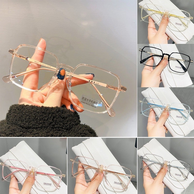 Óculos Anti-Azulados Femininos Radiação De Luz Plana Grande Armação Metálica Quadrada