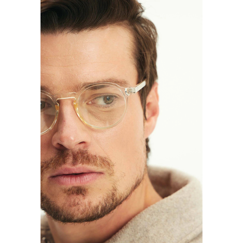 Óculos de Grau Redondo Gaia Champanhe Armação Premium Retrô Unissex Acetato Confortável Elegante