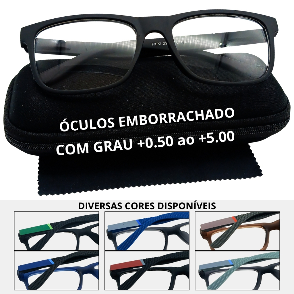 | Óculos De Leitura Masculino Com Grau Perto Emborrachado Grande Com ... este produto | R$ 30,00 | 40% | 4.8/5 | 308 |
