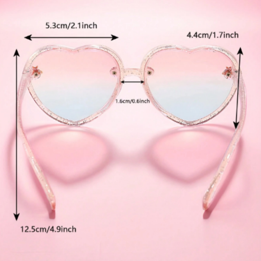 1 par de óculos de moda infantis fofos com coração rosa brilhante para meninas