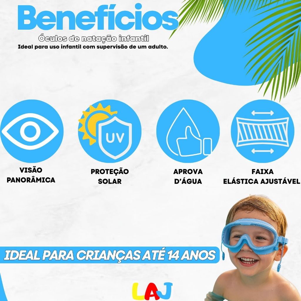 Óculos de Natação Infantil – Proteção UV e Conforto Proporcione diversão e segurança para as crianças em todas as atividades aquáticas com estes óculos de natação especialmente desenvolvidos para o público infantil. Equipados com lentes de alta qualidade e proteção UV completa, são a escolha perfeita para uso em piscinas, praias ou aulas de natação, garantindo conforto máximo e ajuste perfeito. Principais características: Proteção UV eficaz contra o sol Lentes com tecnologia antiembaçante para visão cristalina Sistema de tiras totalmente ajustáveis para fixação personalizada Design anatômico especialmente projetado para o formato do rosto infantil Construção em material ultra leve de alta resistência Ambientes e situações ideais: Atividades recreativas em piscinas residenciais e clubes Aulas e treinamentos em escolas de natação Diversão segura em praias, lagos e ambientes aquáticos naturais Competições e atividades esportivas infantis Conteúdo da embalagem: Um par completo de óculos de natação infantil Especificações e cuidados: Produto totalmente novo com garantia de qualidade Indicado para crianças a partir de 3 anos de idade Disponível para envio imediato