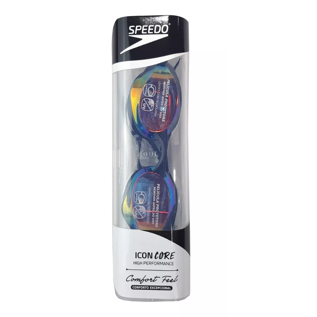Um óculos para várias finalidades, esse é o Icon Core High Performance da Speedo. Um óculos de natação que pode ser usado na piscina, represas ou mar ( águas abertas, maratonas aquáticas e triathlon ). Possui baixo perfil para menor arrasto e lentes espelhadas Rainbow em várias camadas coloridas que reduzem o brilho e reflexo da água nos olhos. Com proteção UV e Anti-fog (antiembaçante) em suas lentes curvas que ampliam o campo de visão. Tira dupla para ajuste preciso em silicone líquido ideal para nadadores avançados e profissionais e narigueiras removíveis em quatro tamanhos, para escolha de encaixe ideal . Extremamente leve e hidrodinâmico. Ideal para ambientes fechados e abertos. Descrição: Lentes: 100% policarbonato com tratamento antiembaçante e proteção contra raios ultravioleta Espelhada Revo: reduzem o reflexo e o brilho da água nos olhos. Tiras: 100% borracha Termoplástica Ventosas: 100% silicone Narigueira: 100% Poliuretano Presilhas: 100% Policarbonato Contém: 1 óculos e 4 narigueiras Área de vedação P: a vedação ocorre em pequena área ao redor dos olhos. Tamanho: único Produto importado Garantia contra defeito de fabricação Você está adquirindo um produto original, de qualidade e durabilidade. Faça a diferença no treino ou competição com produtos que são produzidos pensando em sua segurança e confiabilidade. Nós da Sloth possuímos autorização para comercialização da marca apresentada, bem como nota fiscal de fábrica. Assim que o pedido estiver liberado e aprovado. será faturado, separado e embalado, sempre postado em até 24 horas. Caso ocorra algum imprevisto, o cliente será informado. Todos os produtos serão enviados conforme foram recebidos pela fábrica. Para devolução de produtos com defeito de fabricação, o período será de 30 dias ( vendedor) contados a partir da data de recebimento do mesmo. Após somente com o fabricante onde o período é de 90 dias. Assim que o produto retornar, irá passar por análise e sendo identificado o problema como defeito de fabricação o pedido será cancelado e reembolsado . Enviar em embalagem que proteja o produto de violação ou dano com todos os itens que acompanharam o mesmo. Os custos para envio do produto será por nossa conta. Período para desistência de compra : 7 dias corridos contados a partir da data de recebimento do produto.