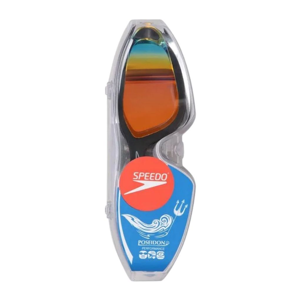 Óculos De Natação Speedo Poseidon Profissional Adulto Os Óculos de Natação Speedo Poseidon unem tecnologia, conforto e design moderno para quem busca alto desempenho dentro d’água. Inspirado na força e serenidade do deus dos mares, este modelo oferece lentes curvas e espelhadas que reduzem o brilho da água, vedação anatômica para ajuste preciso e tratamento antifog que garante visão nítida por mais tempo. Ideal para treinos intensos e lazer, é a escolha perfeita para nadadores que valorizam conforto, resistência e estilo. Especificações: – Tecnologia Comfort Feel: vedação macia e encaixe anatômico – Vedação tamanho G: cobre a área acima das sobrancelhas – Lentes curvas e espelhadas: reduzem reflexos e melhoram a visibilidade – Tiras Easy Slide: ajuste rápido e prático – Proteção UV contra raios UVA e UVB – Tratamento Antifog: previne o embaçamento das lentes – Design One Piece com narizeira integrada Benefícios: – Conforto excepcional mesmo em uso prolongado – Visão nítida e sem embaçamento durante todo o treino – Proteção solar eficaz em piscinas abertas – Ajuste seguro e prático para diferentes formatos de rosto – Design esportivo e moderno com alta performance Composição: – Lentes: Policarbonato – Ventosa: Silicone – Tira: Silicone – Estrutura: Policarbonato Cuidados e Conservação: Lavar com água fria e limpa após o uso Secar naturalmente à sombra Evitar tocar o interior das lentes para preservar o tratamento antifog Não expor ao calor excessivo ou produtos abrasivos Guardar em local seco e ventilado Óculos de Natação Speedo Poseidon com lentes espelhadas, antifog e proteção UV. Confortáveis, resistentes e ideais para treinos e lazer com máxima performance dentro d’água.