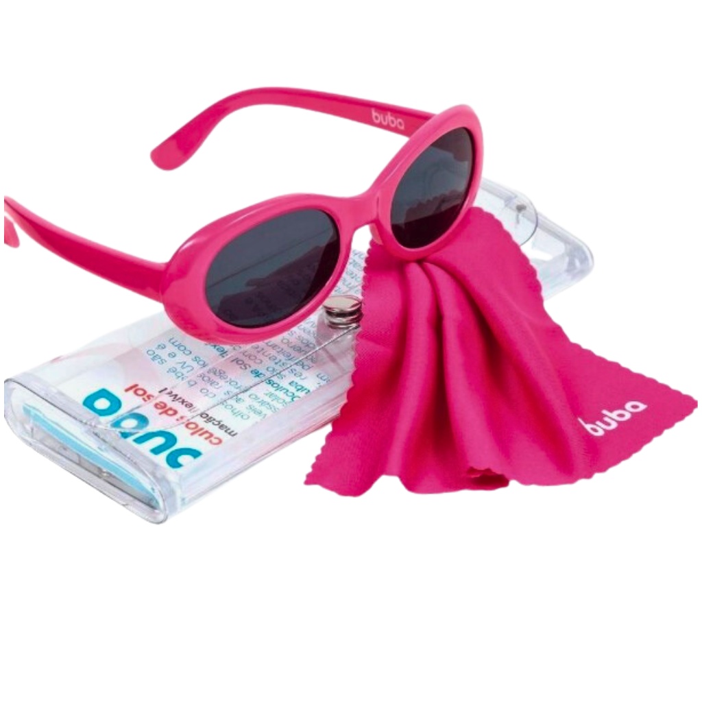Óculos de Sol - Baby Pink. Os olhos do bebê são sensíveis aos raios uv e é necessário protegê-los com o filtro solar. Os óculos de sol flexíveis da buba são confortáveis, leves, resistentes e se ajustam perfeitamente ao rosto do pequeno. São produzidos sem bpa e as lentes protegem os olhos dos raios uva e uvb, são ideais para proteger os olhinhos delicados do bebê. São Confortáveis, leves e resistentes, se ajustam perfeitamente ao rosto da criança. Dimensões Aproximadas do Produto: 10cm x 3cm x 10cm (Altura x Largura x Comprimento/Profundidade). Dimensões Aproximadas da Embalagem: 15cm x 3cm x 6cm(Altura x Largura x Comprimento/Profundidade).