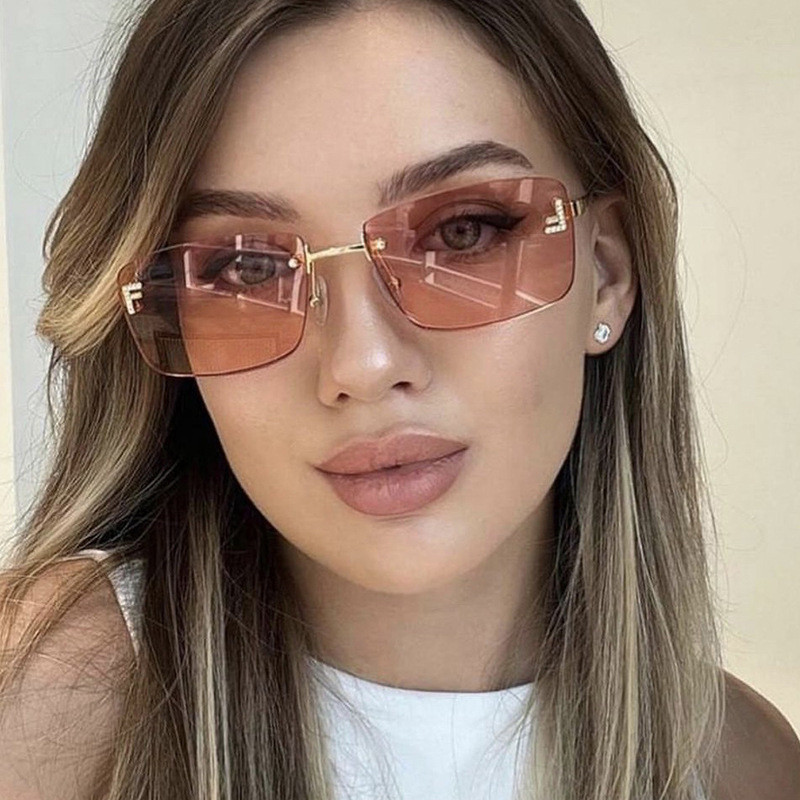 Óculos De Sol Femininos , De metal Personalizados Sem Moldura Com Acabamento Em Diamante
