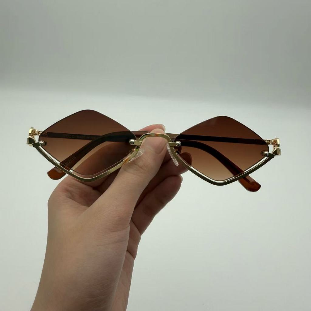 Óculos de sol femininos em metal com formato de diamante. JK2516G