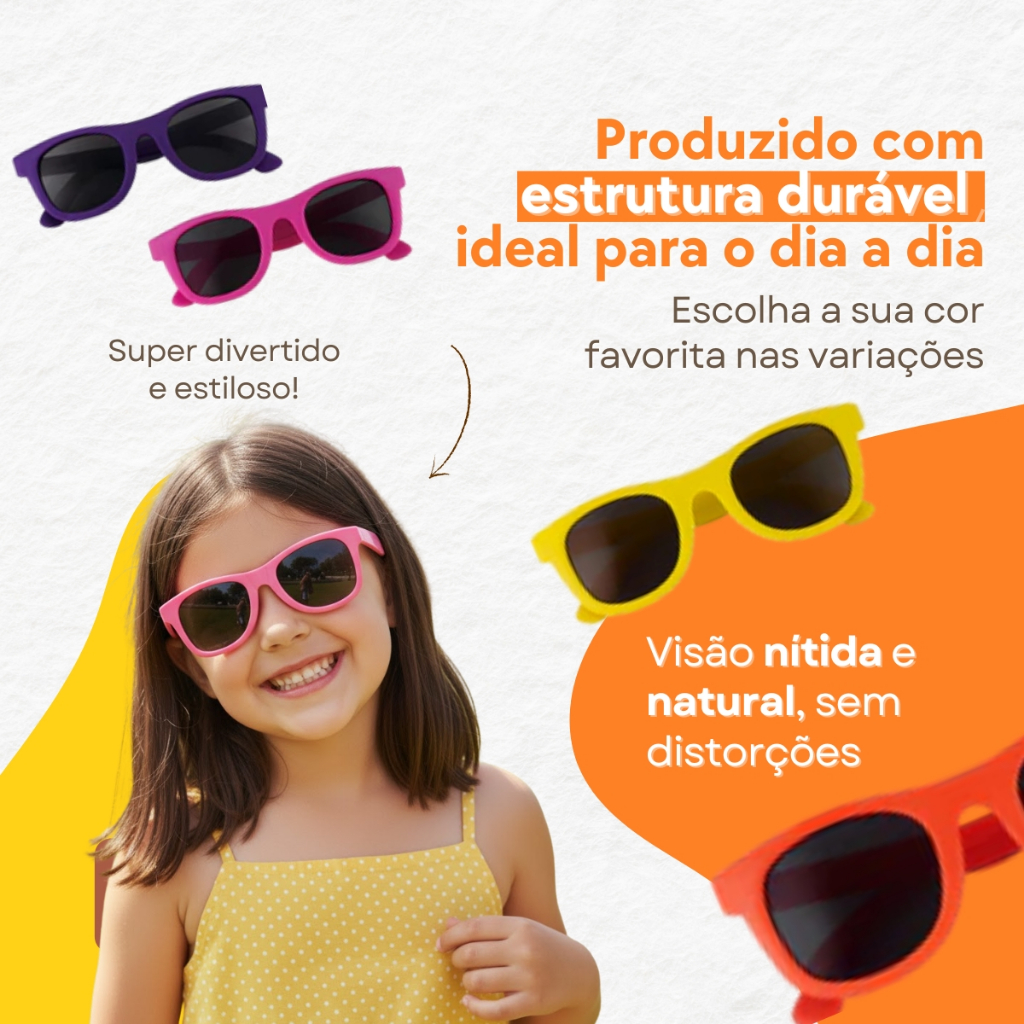 Óculos De Sol Flexível Infantil Silicone Menino Menina