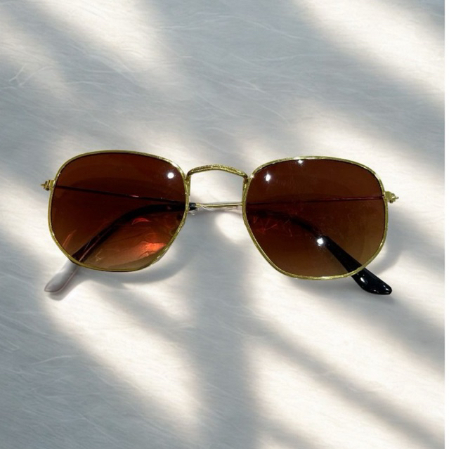 Óculos de Sol Hexagonal Feminino e Masculino com Lente Escura e Armação Metal Geométrico + caixinha preta
