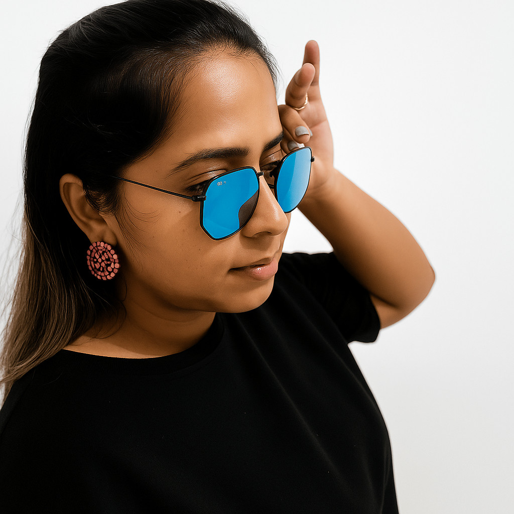 Óculos De Sol Hexagonal Masculino e Feminino Com Proteção UV400 Armação de Metal Inoxidável