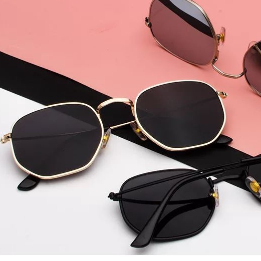 Óculos de Sol Hexagonal Masculino Feminino Vintage Metal Clássico