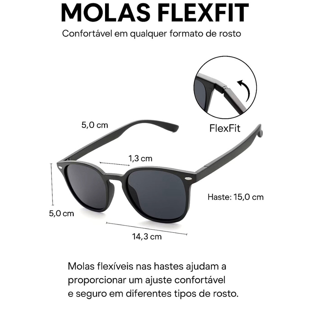 Óculos de Sol Hexagonal Moda Designer Moderno Leve e Resistente com Haste Flexíveis e Proteção UV400