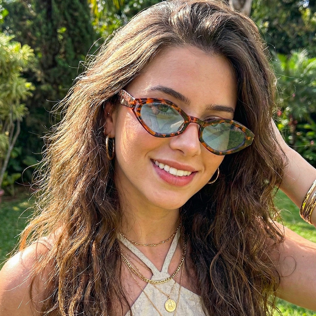 O óculos de sol feminino ideal para quem busca estilo, conforto e proteção em um único acessório. Com design geométrico moderno e fashionista, ele é perfeito para compor looks atuais, elegantes e cheios de personalidade, seja no dia a dia ou em ocasiões especiais. Sua armação em resina espessa garante leveza, resistência e um encaixe confortável no rosto. O apoio do nariz também em resina proporciona maior estabilidade, evitando desconforto mesmo após longos períodos de uso. As hastes em formato geométrico contam com um detalhe metalizado dourado vazado, que traz sofisticação e um toque premium ao visual. As lentes em policarbonato com proteção UV400 oferecem 100% de proteção contra os raios UVA e UVB, cuidando da saúde dos seus olhos sem abrir mão do estilo. ✨ Características do Produto 🕶️ Modelo: Óculos de sol feminino 🎨 Design: Geométrico, moderno e fashionista 🧱 Material da armação: Resina espessa, leve, confortável e resistente 👃 Apoio do nariz: Em resina, para melhor encaixe e conforto 💫 Hastes: Formato geométrico com detalhe metalizado dourado vazado 🔍 Material das lentes: Policarbonato ☀️ Proteção: UV400 – proteção total contra raios UVA e UVB (100%)
