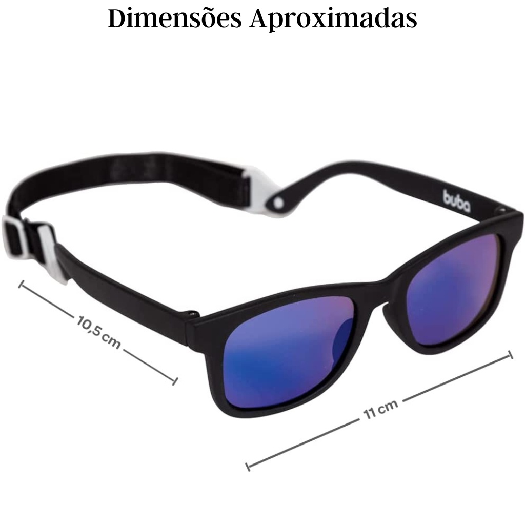 DESCRIÇÃO DO PRODUTO Os olhos do bebê são super sensíveis à luz solar e precisam de proteção de alta qualidade, já que a estrutura de seus olhos permite que a luz solar penetre mais profundamente e sua capacidade de filtrá-la é muito menor do que em adultos. Os óculos de sol com armação flexível da Buba são ideais para proteger os olhinhos delicados do bebê. Confortáveis, leves e resistentes, se ajustam perfeitamente ao rosto da criança. A Buba fornece uma gama de óculos de sol que garantem uma alta proteção para os olhos delicados dos bebês. Os óculos de sol Buba têm proteção 100% UVA e UVB, armação flexível e estojo com lenço em microfibra para limpeza. CARACTERÍSTICAS TÉCNICAS Conteúdo da Embalagem: 1 Óculos de Sol Infantil Preto com Alça Buba Dimensões Aproximadas do Produto: 3,5 cm x 11 cm x 10,5 cm (Altura x Largura x Comprimento/Profundidade) Dimensões Aproximadas da Embalagem: 4 cm x 8 cm x 17 cm (Altura x Largura x Comprimento/Profundidade) Material/Composição: Armação: 100% Elastômero Termoplástico (TPE) ; Lentes e Estojo: 100% Policarbonato (PC) E Botão do estojo: 100%Ferro; Lenço: 100% Microfibra. Idade Mínima Recomendada: A partir de 3-36 Meses Participantes: A partir de 1 pessoa Alimentação: Não se aplica Marca: Buba Referência: 11741 Outras informações: As cores podem variar entre as imagens mostradas acima e o produto. Imagens meramente ilustrativas. Aviso: As informações e imagens divulgadas são de total responsabilidade do fabricante/fornecedor.