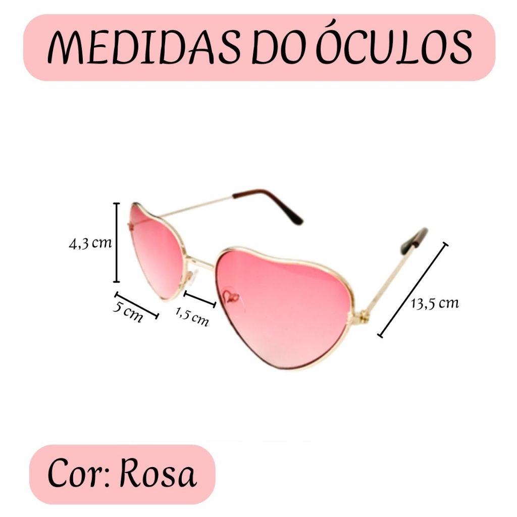 Óculos De Sol Infantil Feminino Coração Proteção UV 400 SUPER PROMOÇÃO DE LANÇAMENTO POR TEMPO LIMITADO!!!!. Os óculos de Sol são puro estilo sem deixar de lado a proteção necessária. Uma linha de óculos para proteger os olhos dos pequenos com todo o cuidado e carinho que existem e nossos produtos. Modelos exclusivos e de qualidade que protegem os olhinhos. Proteção 400 UVA/UVB Você receberá nessa compra- 1 (um) Óculos Infantil Feminino Modelo Coração com Proteção 400 UVA/UVB DADOS TÉCNICOS: Composição Armação: TR90 Premium Composição lentes: Tratamento classic uva/uvb 400 Lentes 5 x 4,3 cm Frente 13,5 cm Hastes 13 cm Indicado para crianças de 2 a 8 anos, mas á exceções depende do formato do rosto, em caso de duvidas as medidas estão disponíveis acima.• PRODUTOS COM NOTA FISCAL • ENVIO IMEDIATO